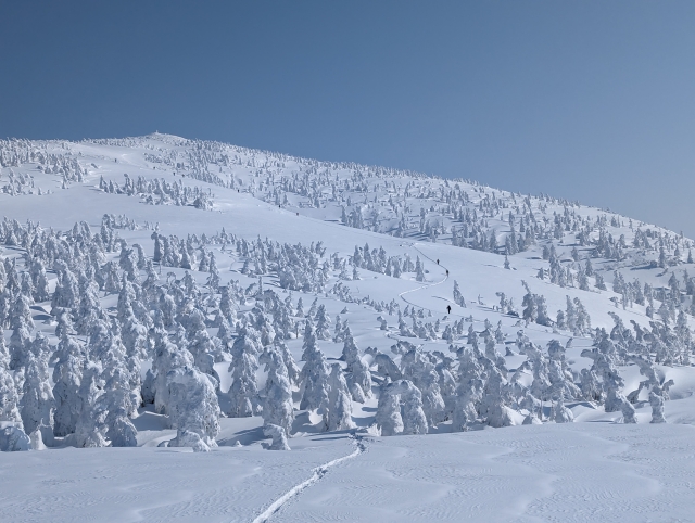 ロープウェイを利用すれば手軽に山頂近くまで行けるため、初心者も安心。高山植物の群落やブナ林が広がり、自然観察にも最適です。冬は樹氷で有名ですが、初夏と秋の景色も見逃せません。